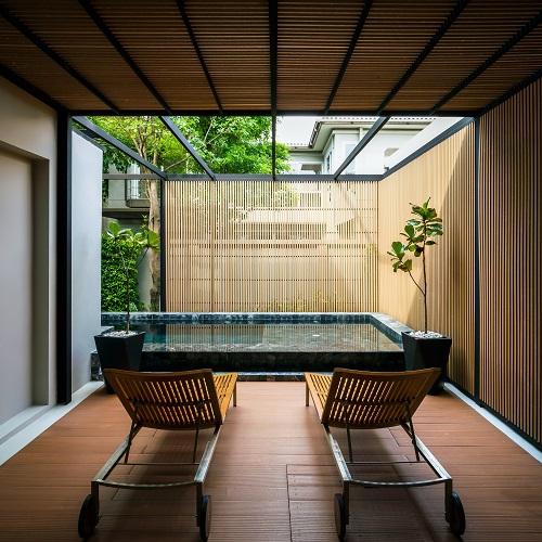 หลังคาไม้ระแนง ช่วยให้ดูโปร่งโล่ง สามารถกันแดด กันฝน ให้กับมุมพักผ่อน ทำให้สามารถนั่งเล่นนั่งพักผ่อนไม่ว่าจะเวลาไหนได้อย่างสบายใจกับบรรยากาศสวนในบ้าน เพราะไม้ระแนงป้องกันความร้อนได้ดี